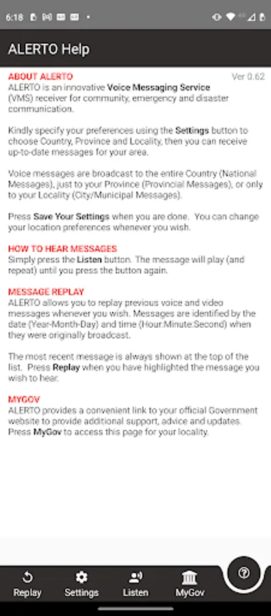 Welcome to ALERTO Receiver, an innovative Voice Messaging Service (VMS) receiver for community, emergency and disaster communication.