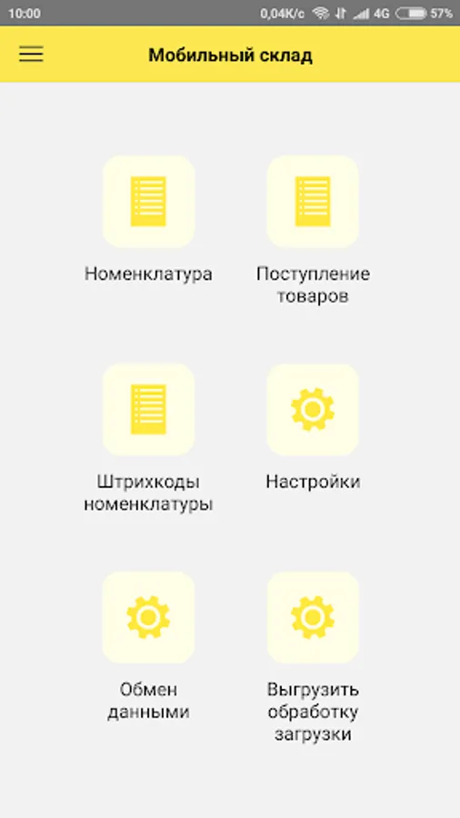 Nomenclature is transferred from Accounting, and is not created in the application - this is done in order to avoid conflict in the database Accounting and facilitate the work of the mobile application the user, since the creation of the nomenclature would have to specify the set of required parameters. To unload the nomenclature of Accounting and loading unloading data processing application is built. You need to use the "Unload processing load", after which you are prompted to select the folder in which you want to save it. This treatment must be transferred to your computer and open in the mode 1C. If you have uploaded data from a mobile app, they can be transferred to the accounting department by pressing the "Load data" and indication of upload directory (preliminary data need to be transferred from the mobile device to a directory on your computer). This treatment also has the option "Overwrite the same data," which is responsible for the re-entry documents have previously created receipts and barcodes whose references coincide with downloadable (needed in case of changes in the mobile app). If the option is removed, the "same" objects will be ignored.