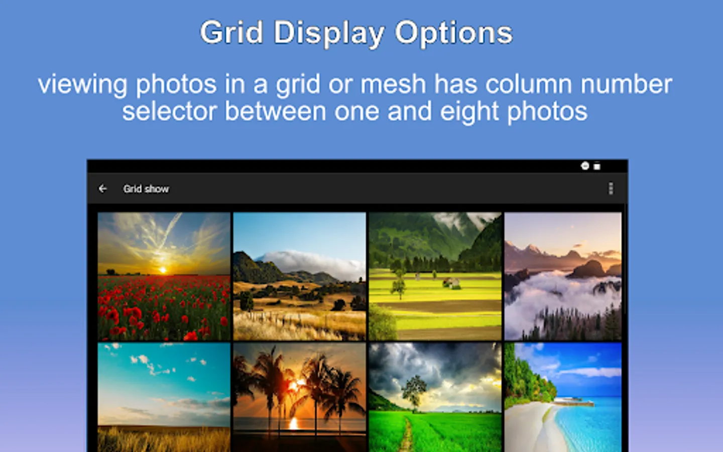 The program also offers the display of the images in a Grid with two columns as standard options of 1, 2, 4 and 8 columns is available through the menu of this page.