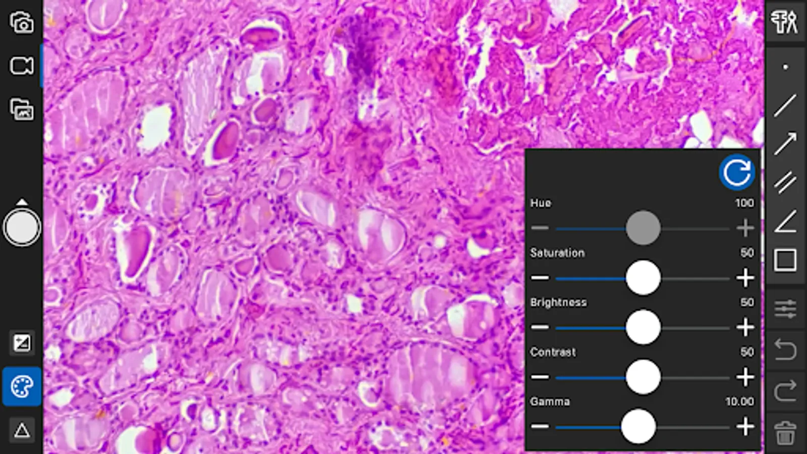 AccuView mobile app is specifically developed to use with ACCU-CAM WiFi cameras from ACCU-SCOPE. Use the app to connect to a camera, view live images, capture and save images and video to the photo archive on your mobile device, and share captured images/video with peers, colleagues, etc. using your device's text and email capabilities. AccuView also allows measurement of features within an image, and annotation of the image.