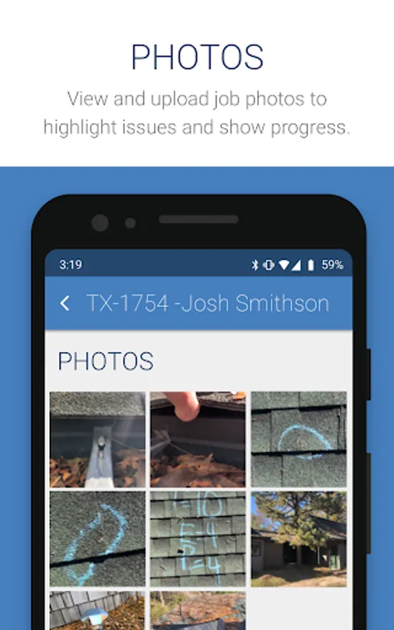 Access to shared photos with the ability to upload additional job progress and completed photos directly back to the AccuLynx job files