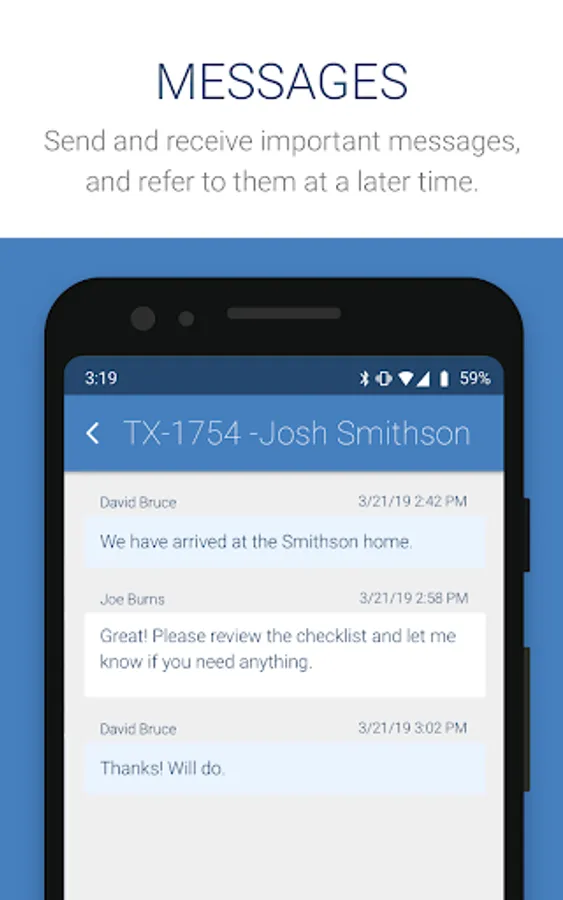 Send and receive job messages with the AccuLynx user regarding the specific labor order - all communication within the app is then stored with the labor order