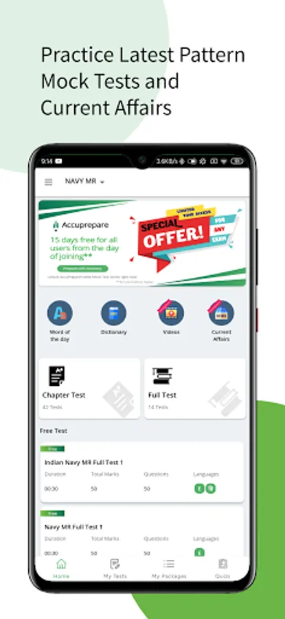 ✔ Latest pattern and free Mock Tests & Current Affairs practice in the NAVY MR Exam: Online Mock Tests App.