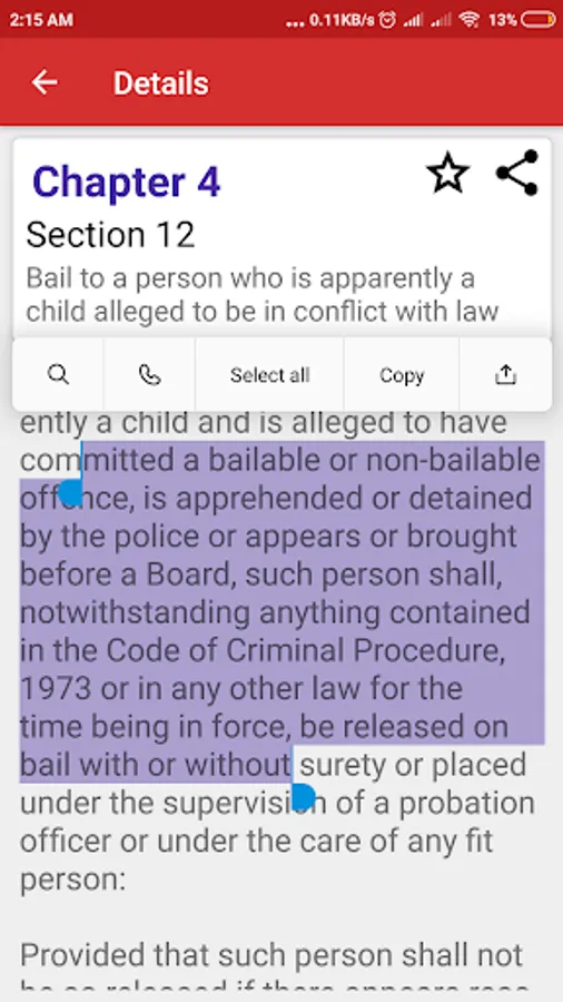 - Share Section Title, Content or both through SMS, Email or any text related application.