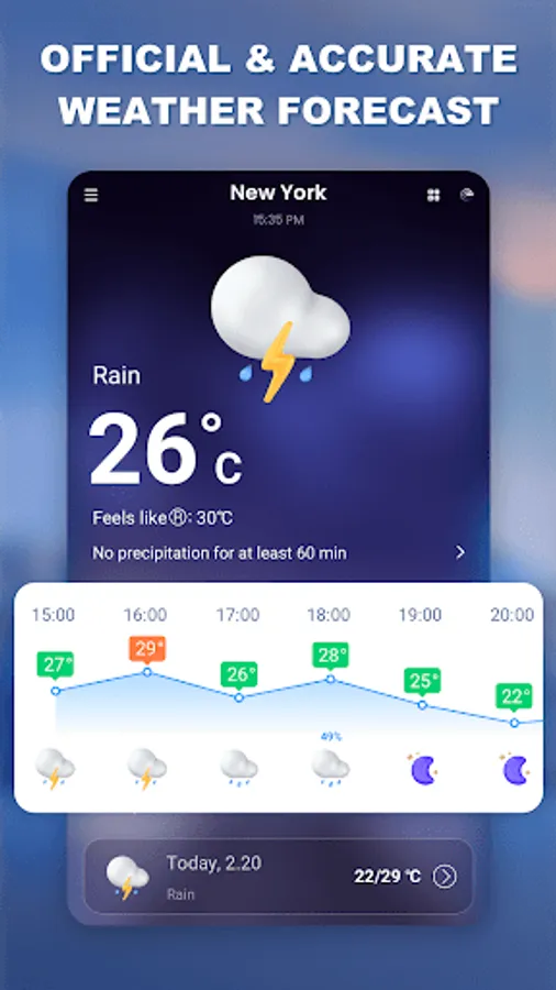 Weather App - Radar & Widget is one of the most accurate weather forecast apps, providing you with rich and detailed weather information and beautiful UI. Easy to use, clear and understandable.