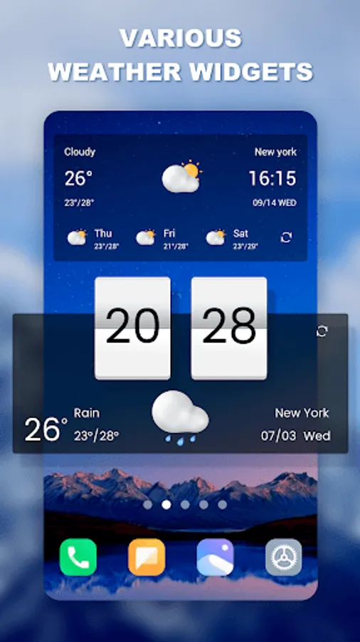 The weather application provides a variety of beautiful and different types of widgets with weather information, and updates the weather in real time.