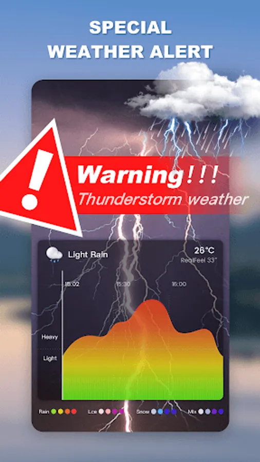 Real-time dynamic Doppler radar can help you prepare for all kinds of severe weather, and accurate weather alerts can give you advance forecast of severe storms, tornado warnings and typhoon warnings, heavy rain and thunderstorms, extreme heat and more.