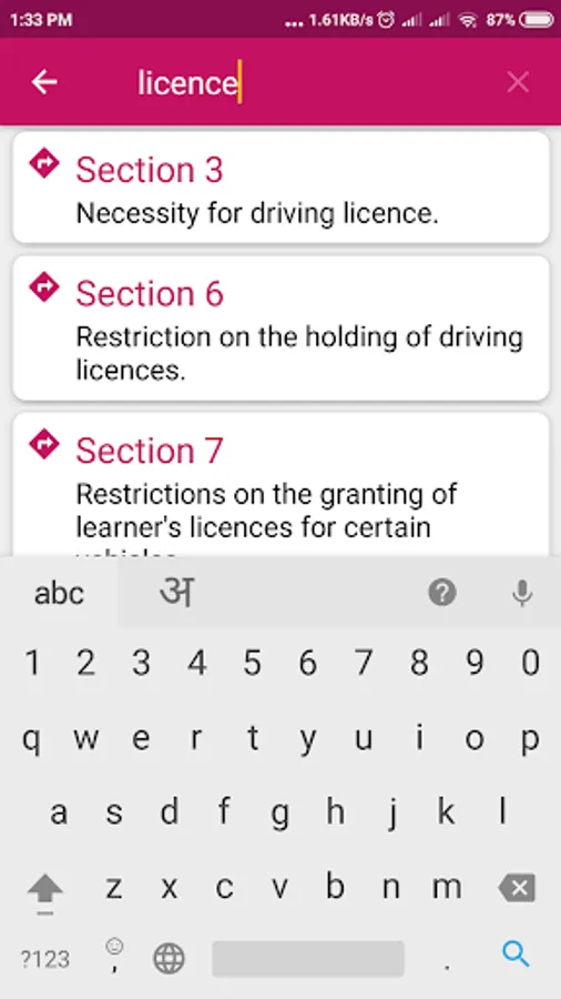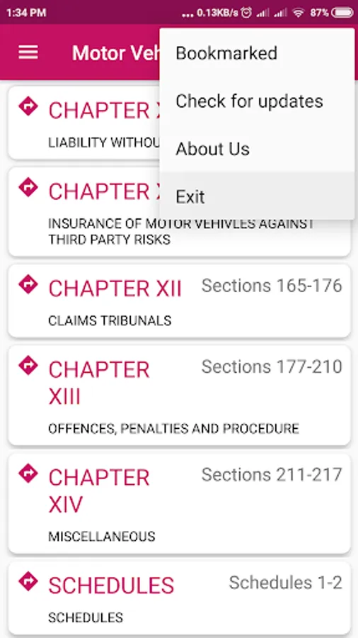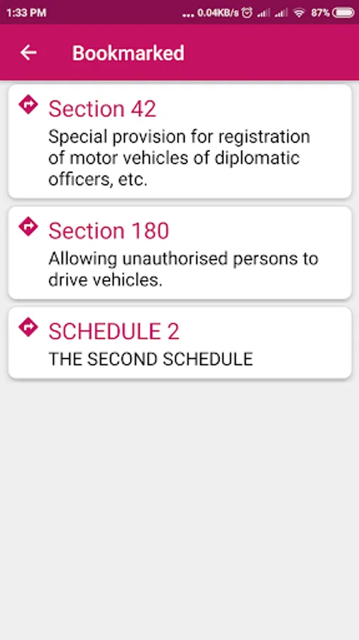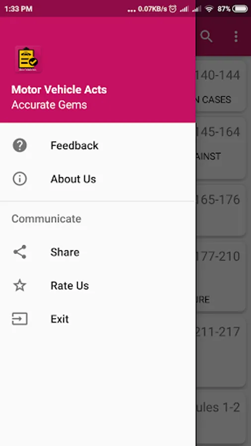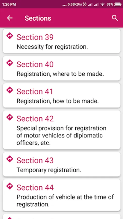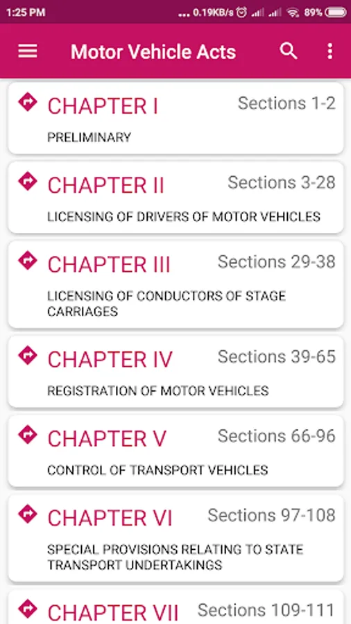 - Neat Presentation of Motor Vehicle Acts in the form of Heading and Description in every Screen followed by android latest design guidelines
