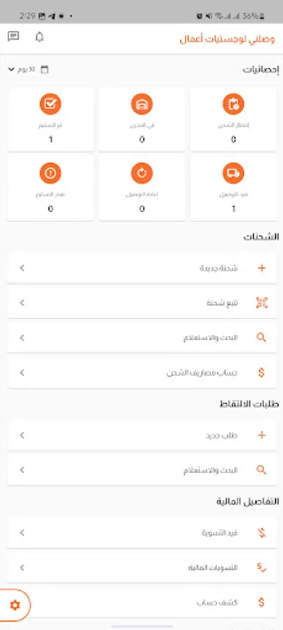 The application allows managing the delivery and receipt of shipments using a mobile phone