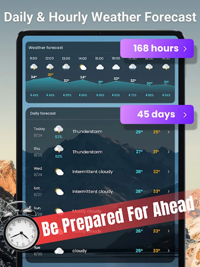 Track the weather forecast for the next 25 days, learn about the weather in advance, and plan future food, clothing and transportation.