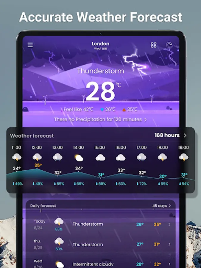 Weather Forecast - Accurate Local Weather & Widget is one of the best weather forecast apps and it is a completely free weather app.