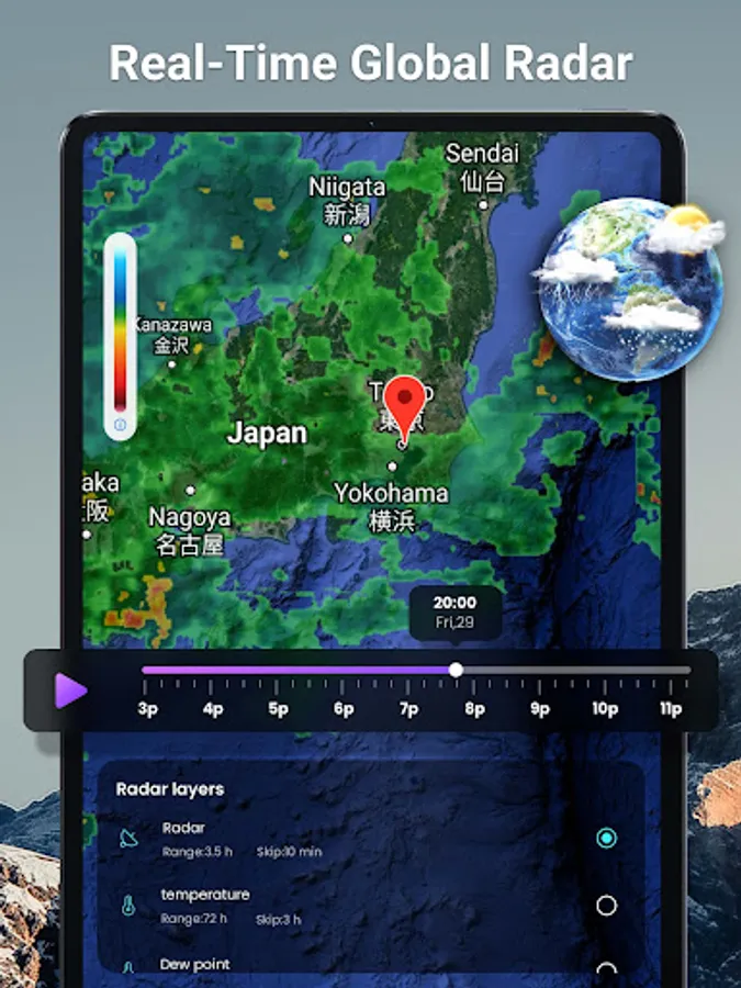 Use local and live weather radar with the radar map feature, view the radar map under different conditions.