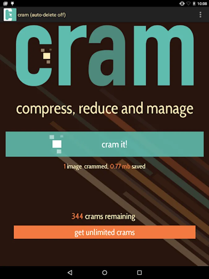 Short on storage space? Use Cram, an image compressor app, to shrink pictures on your Android device by 60% or more—without compromising the actual display/print dimensions, resolution, or beauty of your photo files.