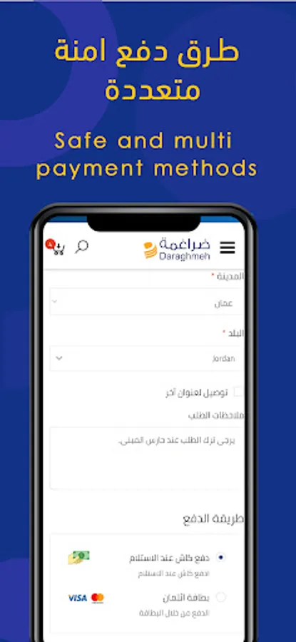 - Secure payment through credit cards and electronic payment (online payment). In addition to paying cash on delivery option.