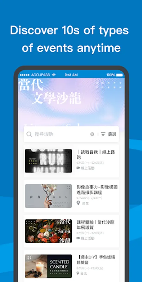 Interesting events are underway! Be part of events anytime, anywhere. Explore the unknown and everything fantastical. Easily achieve all of them with ACCUPASS.