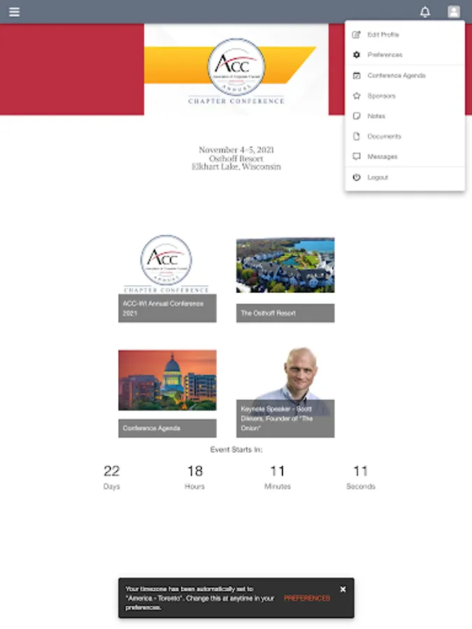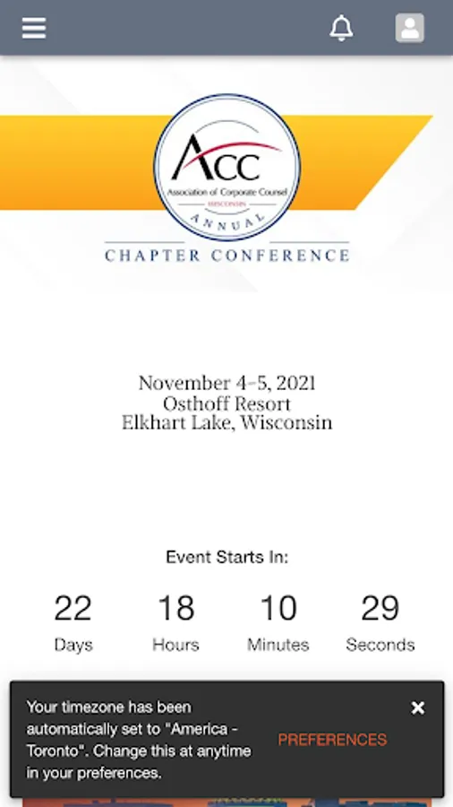 The ACC Wisconsin's Annual Conference App for 2021. Our Annual Conference and Meeting of Members is at the luxurious Osthoff Resort located in Elkhart Lake, Wisconsin. This 1½ day event is a great opportunity to network with fellow in-house counsel and earn valuable CLE credits. CLE programming is specifically designed for you as an in-house attorney.