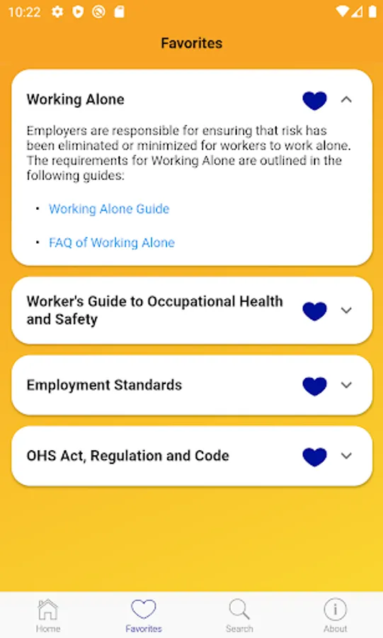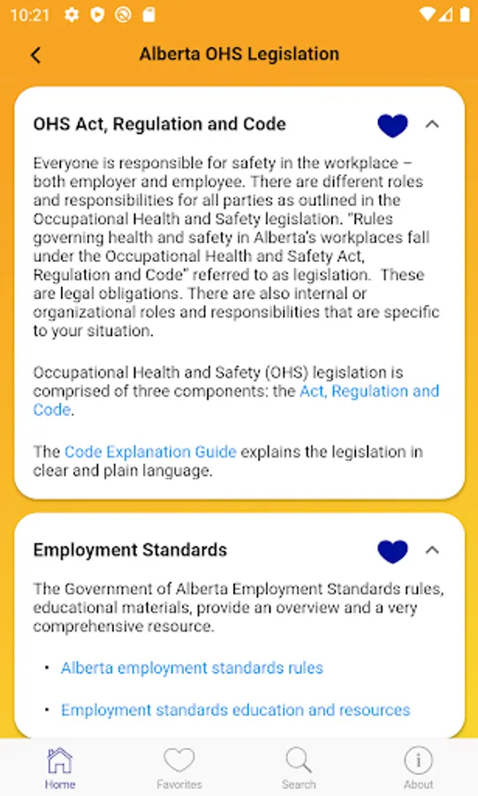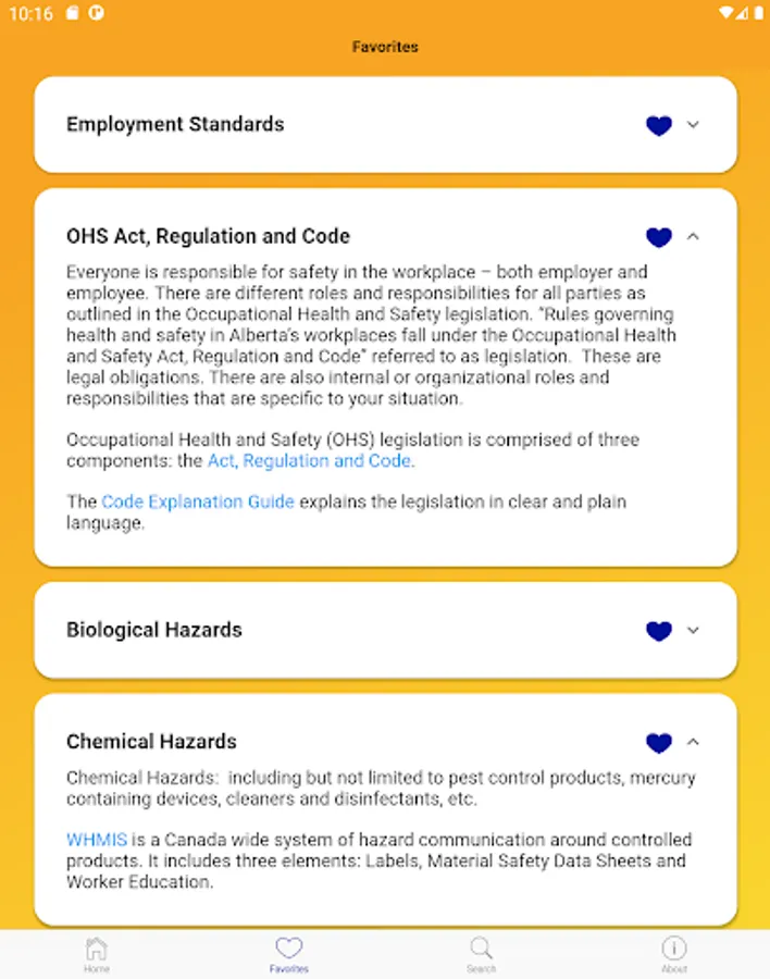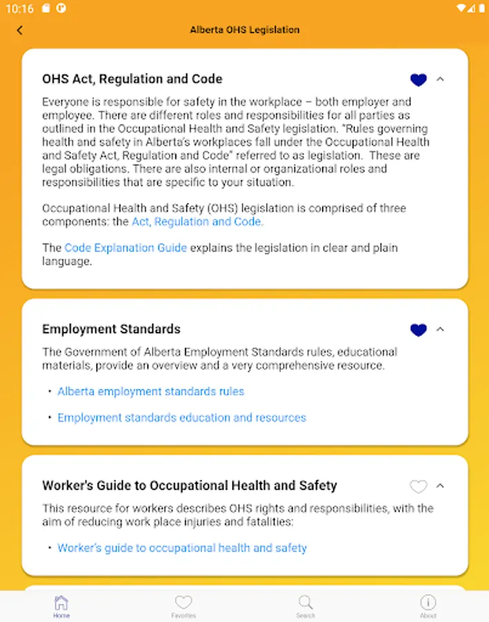 The app includes: occupational health and safety legislation and standards; top safety issues and hazards faced by the sector today; and how to handle stress, safety culture, and inspections—just to name a few. Each section also includes links to external resources, tools, and templates from trusted occupational health and safety sources.