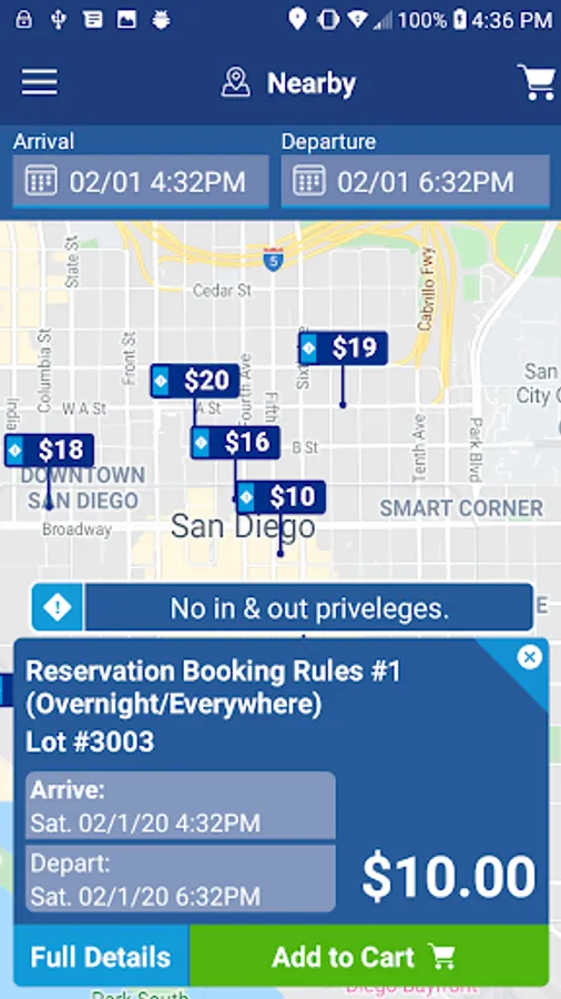 • View real time availability through red (full), yellow (filling up), green (plenty of space) color coding (select locations)
