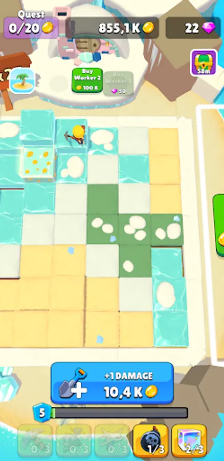 In this addictive game you won't need to match three, just tap to dig! Find gold and other resources to progress and claim new Islands!