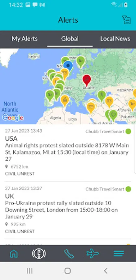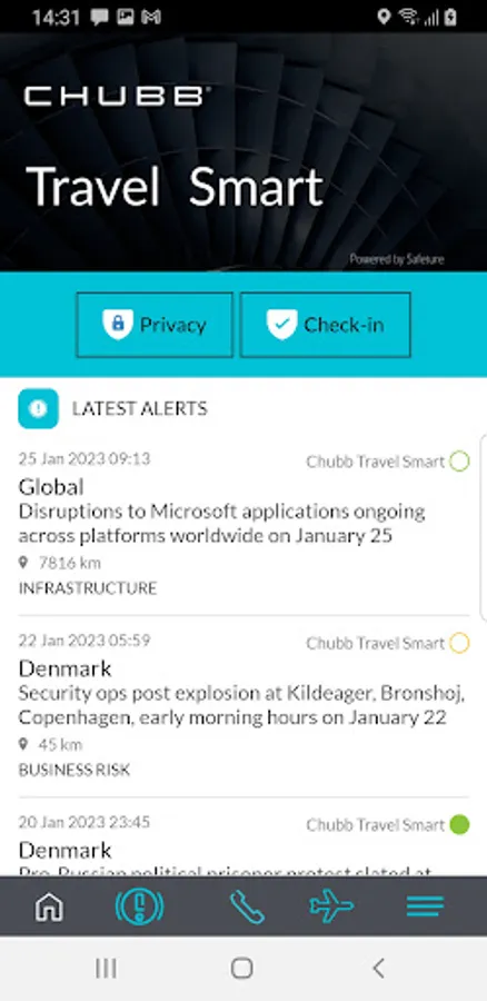 The latest version of Chubb Travel Smart employs state of art information mining technology to enable swifter identification and communication of potential threats based on your location or planned destination. It aggregates and filters information from thousands of different sources globally, including news media, government institutions, security and health information databases and social media. All the information is reviewed and curated 24/7 by a team of experts to ensure accurate and timely alerts are pushed to you, helping you to stay safe and avoid trouble.