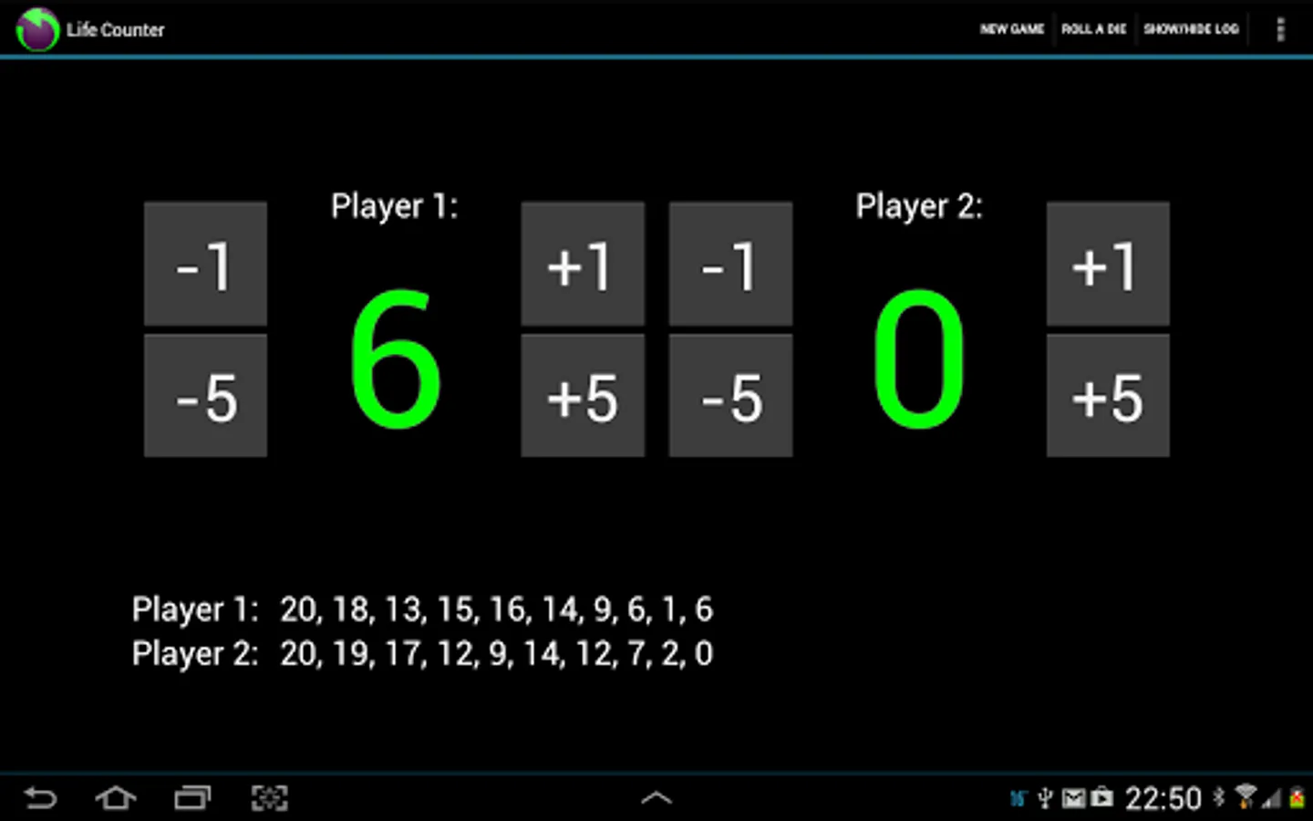 Simple MTG Life Counter with log for both players. Life can be added/removed both by clicking +/- buttons and by swiping the life counter.