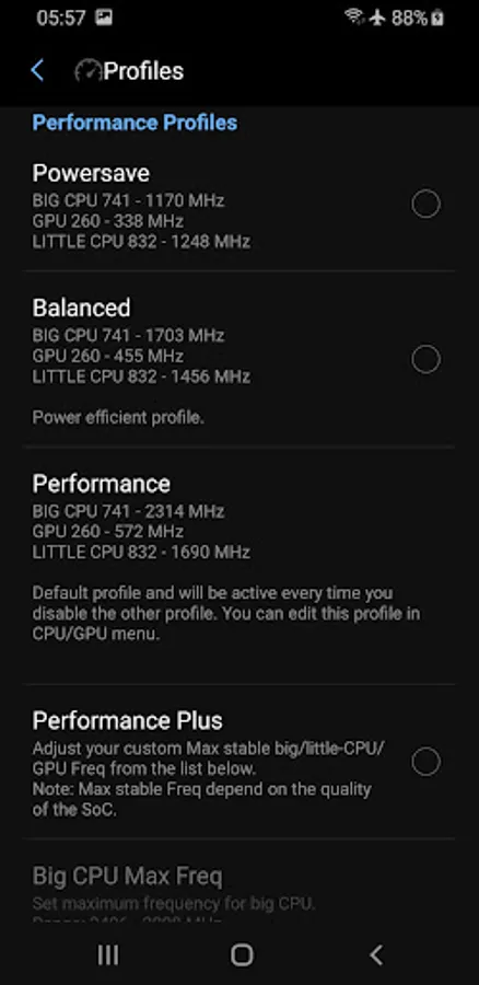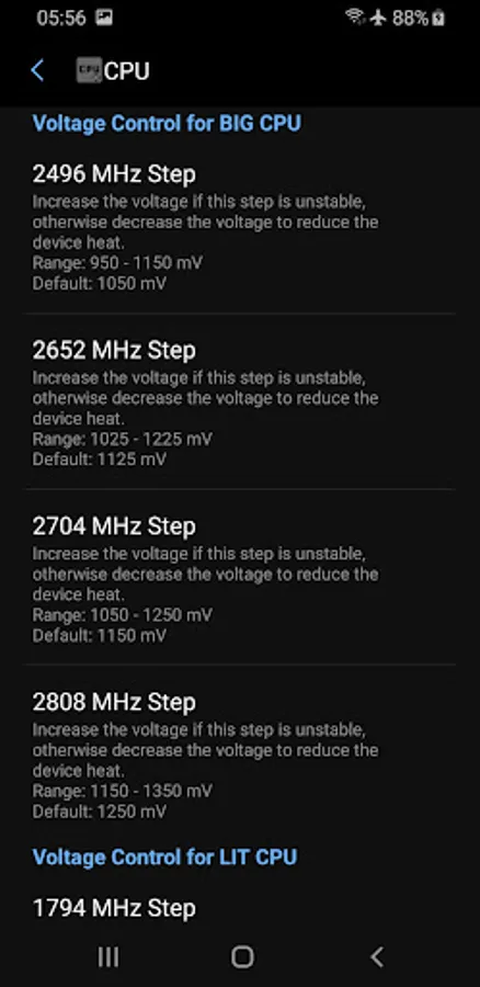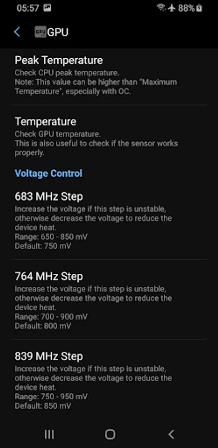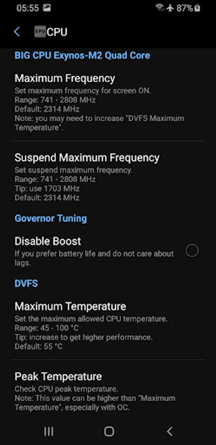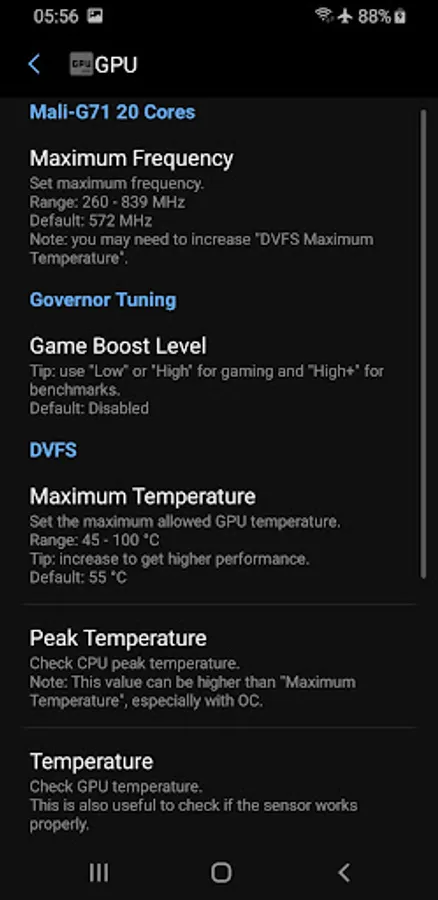 -- CPU/GPU DVFS thermal throttling control (ability to adjust the max allowed CPU/GPU temp)