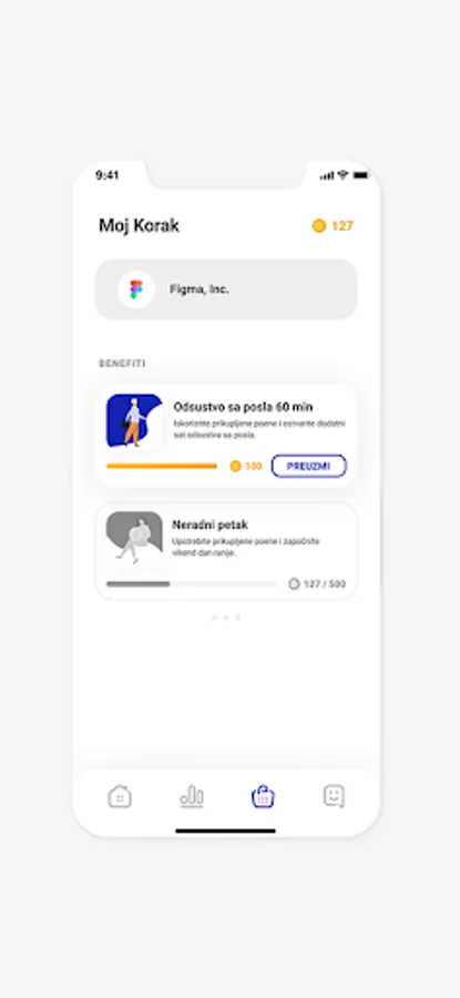 Biznis Korak app is developed in order to provide healthier business environment and increase employee's motivation and productivity. Employees collect points by walking and will be able to exchange them for various benefits provided by the company. App can be used for steps and progress tracking along with benefit management.
