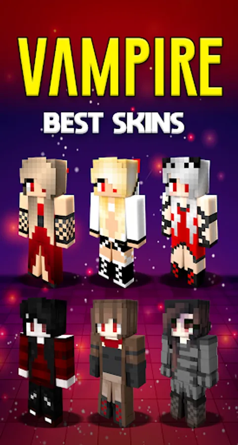 Minecraft Skins permit to change how your player looks to others in the Minecraft world. Alter any of these Minecraft skins to make your character looking cool with our Vampire Skins mcpe skin and deploy in your world. Download free and fun with companions!