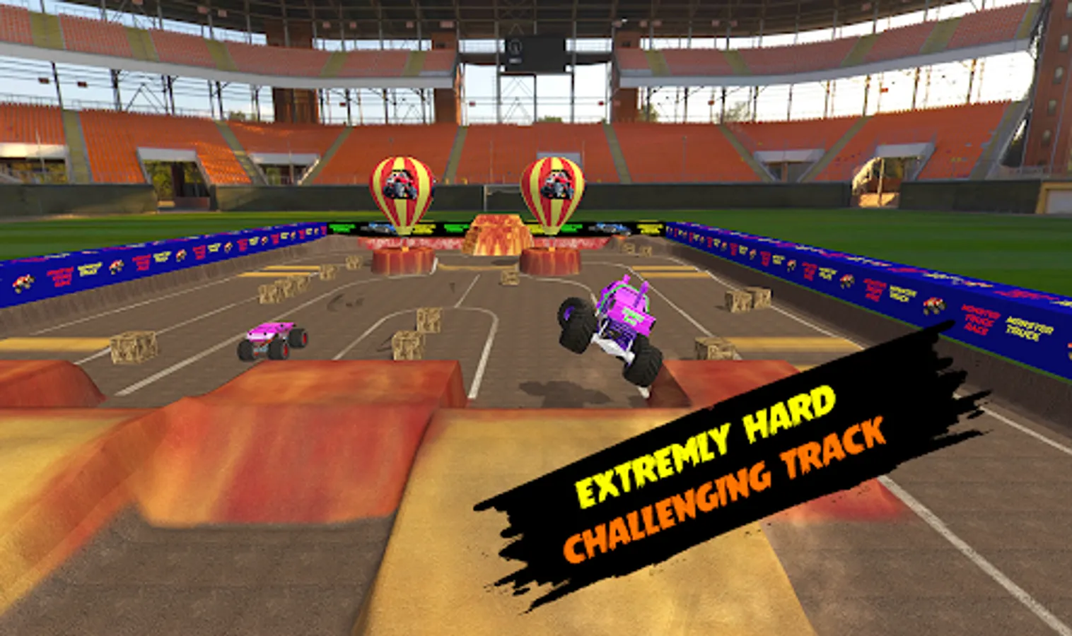 So let's start the monster truck racing game & extreme off-road monster jam drag racing and kill your boredom while playing the outstanding offline monster truck games in four different stadiums with customized monster racing trucks.