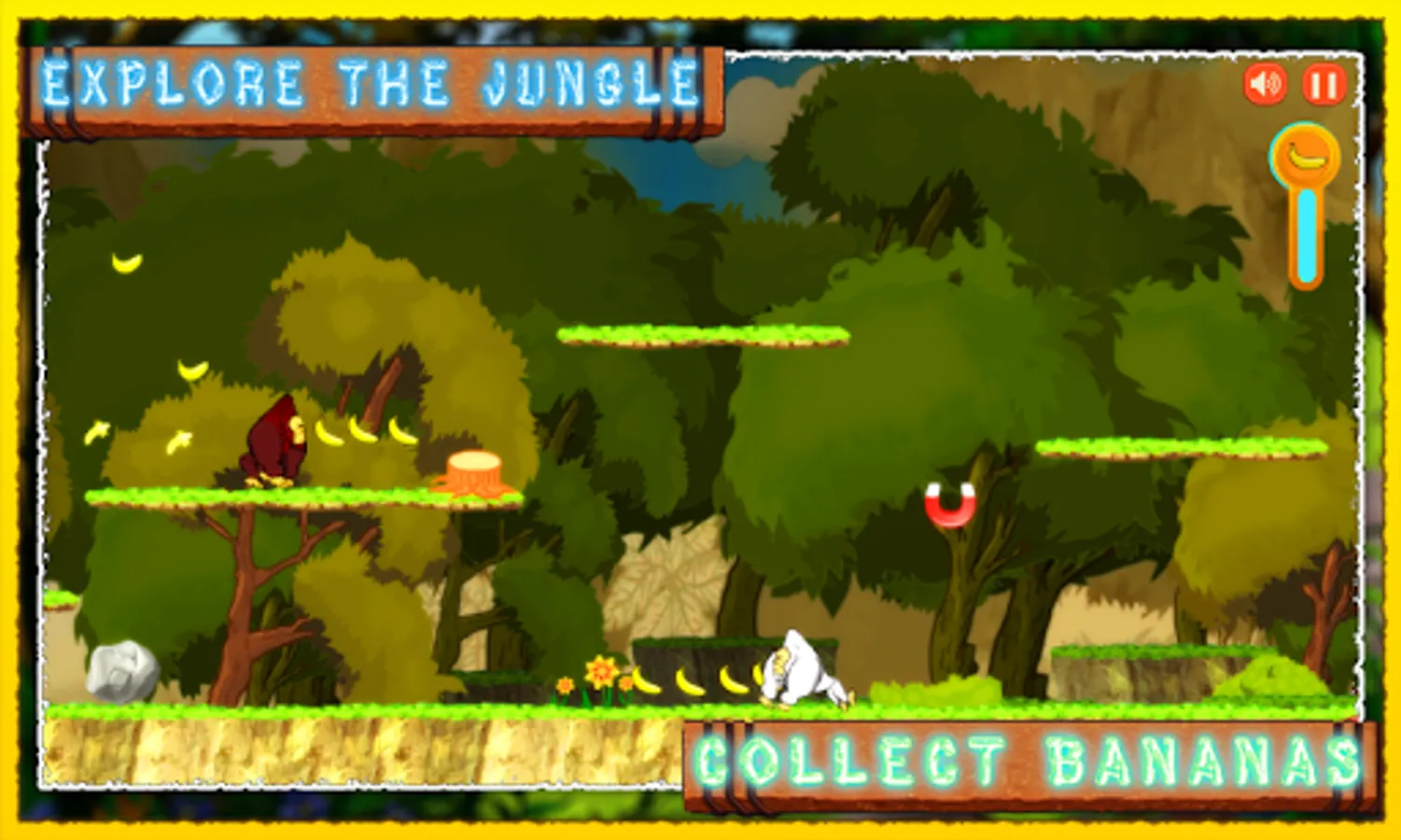 Run, jump, bounce and swing control with highly responsive single-finger tap and swipe controls. A highly dynamic game engine will provide endless fun in this neverending run. Each session is a new challenge Collect as many bananas as possible to fill your energy bar. Use a power-dash to destroy obstacles .