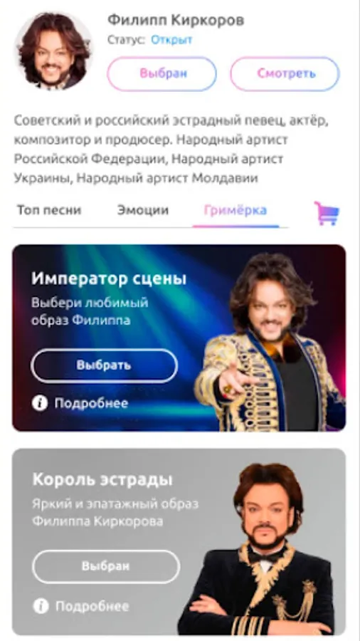 - run virtual shows of your favorite artists in augmented reality from any place, wherever you are; choose recognizable stage costumes of stars;