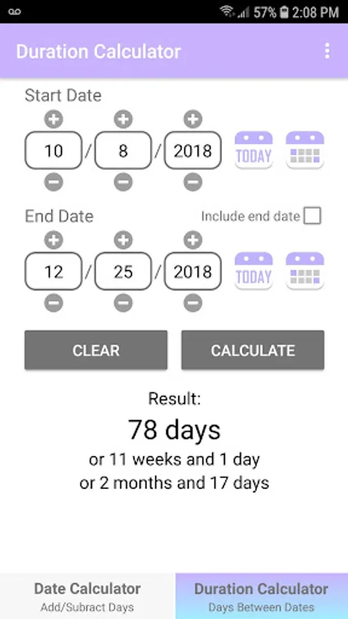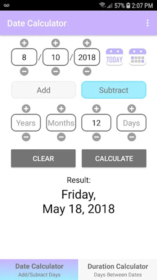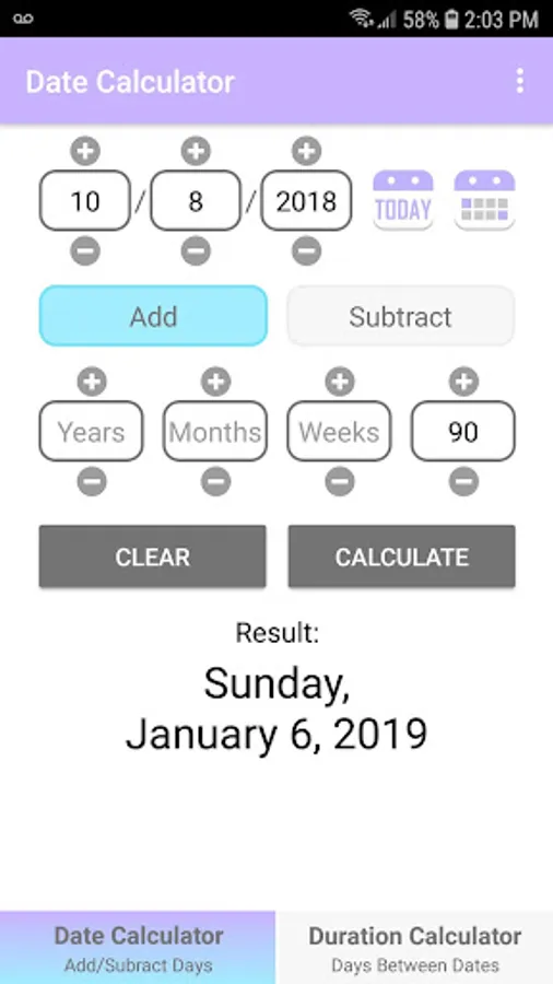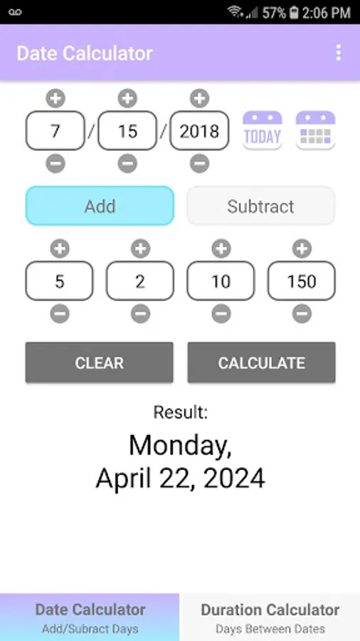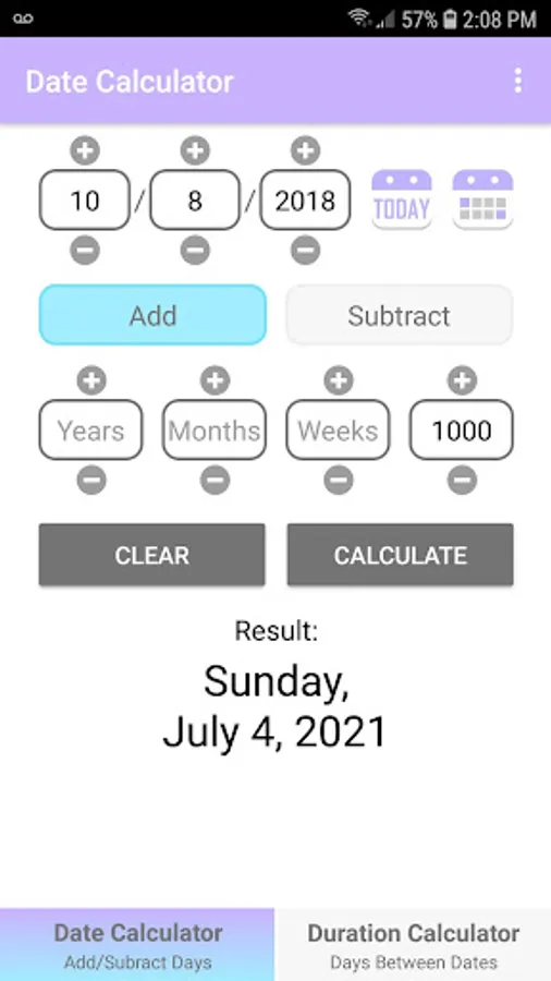 Date Calculator adds or subtracts days, weeks, months, and years from an initial date to calculate the final date. It can also calculate the number of days between the two dates you choose. The date can be entered manually or selected from the calendar or selected with the today button. The simple interface allows you to easily and quickly use the app.