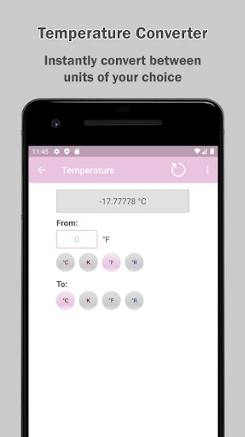 - Temperature: degrees Celsius, Kelvin, degrees Fahrenheit, degrees Rankine