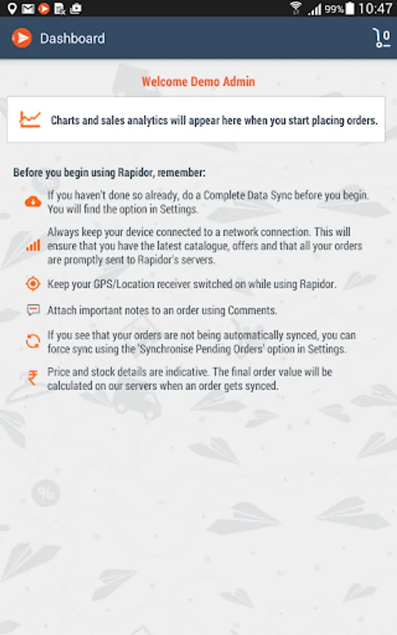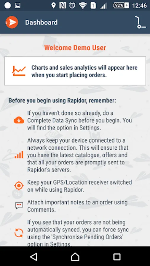 Rapidor is an enterprise mobile application for placing orders easily with/without an internet connection.