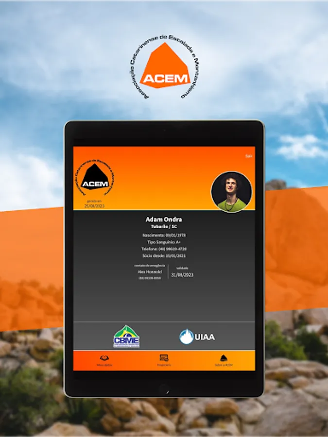 App for members of the Santa Catarina climbing and mountaineering association, digital membership card, information about climbing routes and sectors, dissemination of events and information about climbing in Santa Catarina.