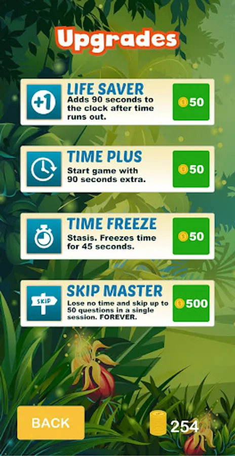 4. Skip Master - with this upgrade, you can skip up to 50 questions without any penalty. This is activated automatically upon purchase.