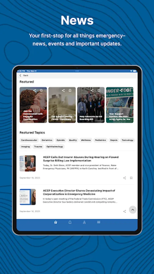ACEP is here for you so you can be there for your patients, everything you need to know, all in one place. The ACEP app is here to give you what you need, when you need it.