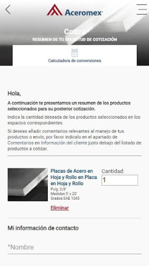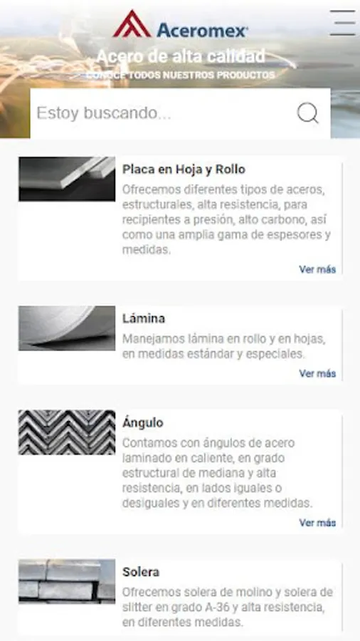 From the APP of Aceromex, know our steel products, browse and select the product of your interest to quote.