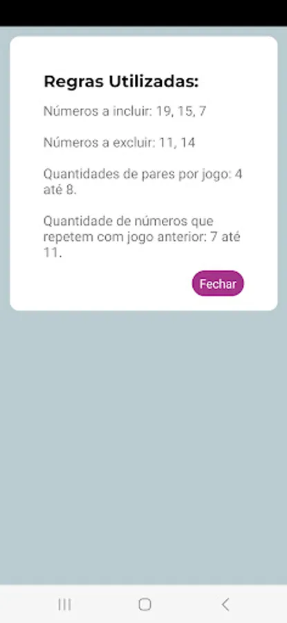 Note: this application is not affiliated with Caixa Econômica Federal. If you want to play in Caixa lotteries, we advise you to download the official Caixa application or play in a lottery.