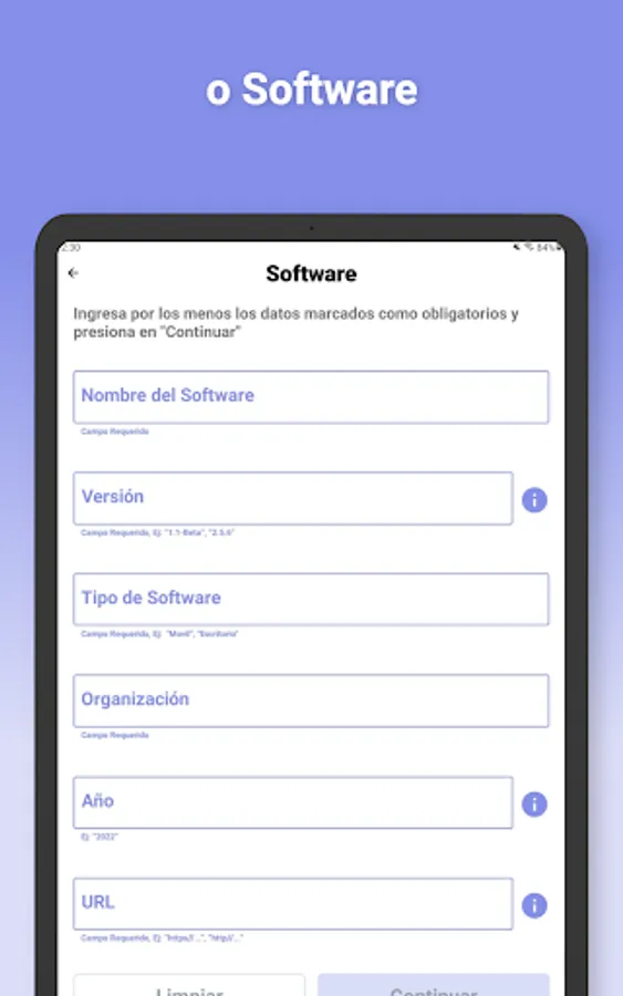 If you have doubts about the data that you are asked to fill in or you do not know in which part of the document they are located, each text field has an information symbol (i) that when you touch it, a box will appear with the necessary help.