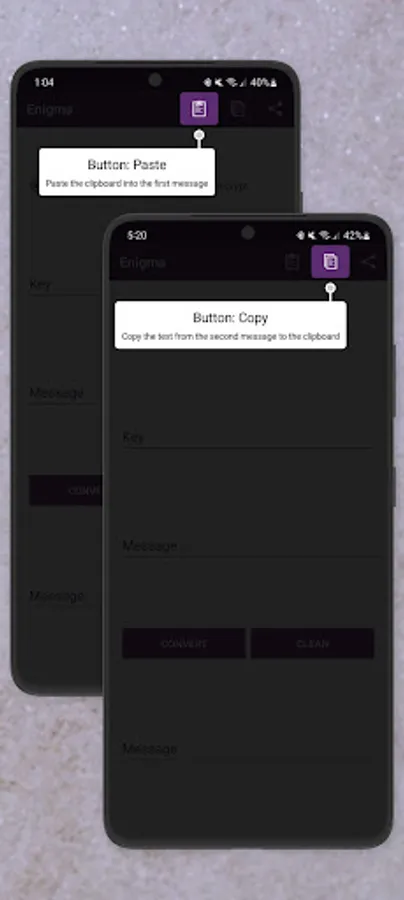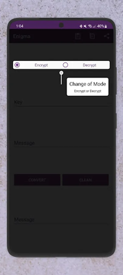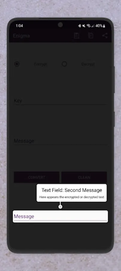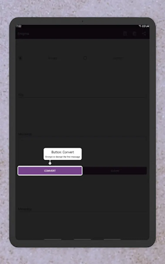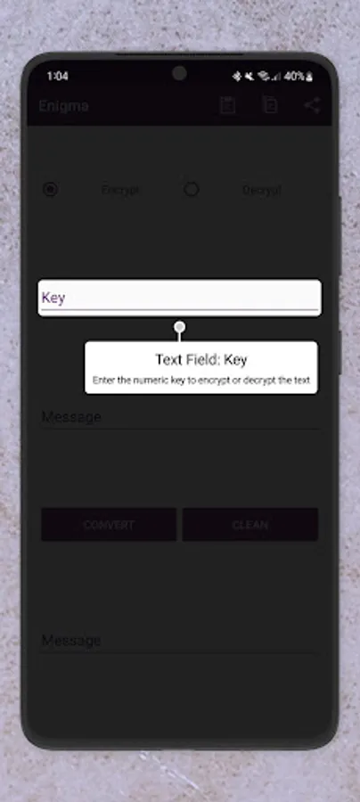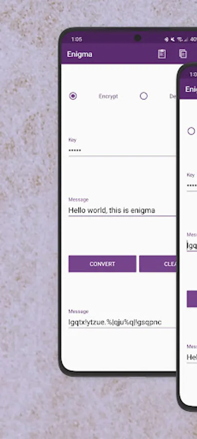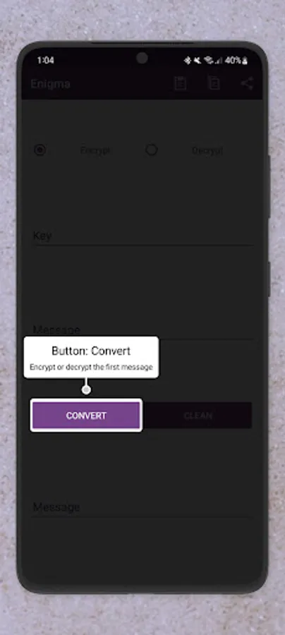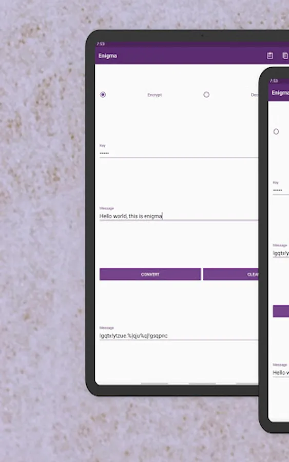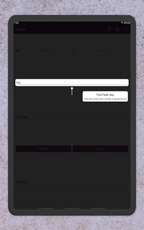 Enigma will allow you to encrypt and decrypt your messages with a numerical key created by you. This will allow you to have more privacy and security in your conversations or texts.