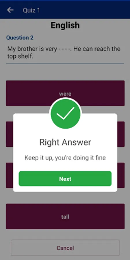 Once your quiz is created you can try to answer it; The app will show you the question and the number of options you chose with different answers, you must choose the answer that you think is the correct one. If the answer is correct, the app will notify you and if it does not show you the correct answer.