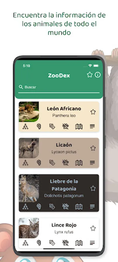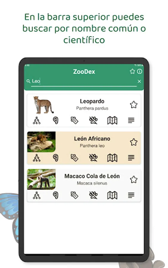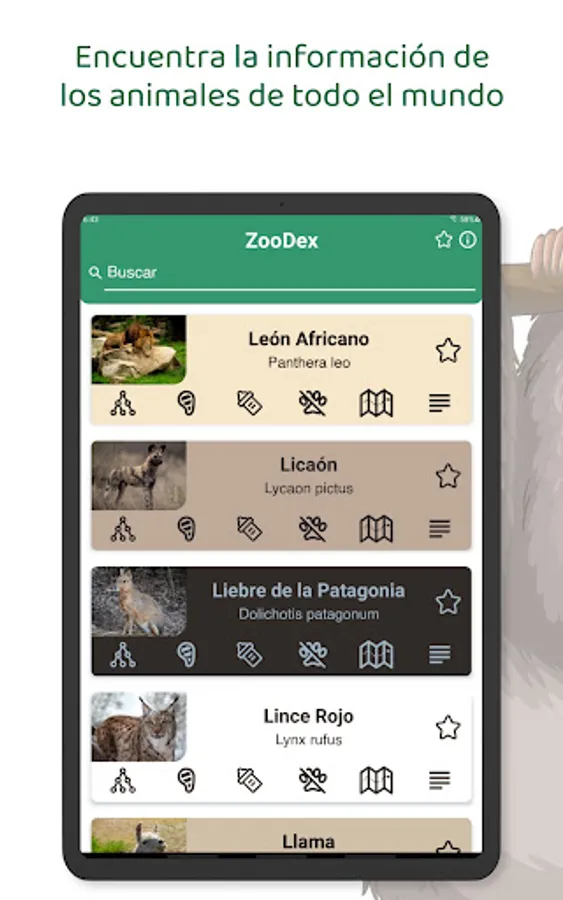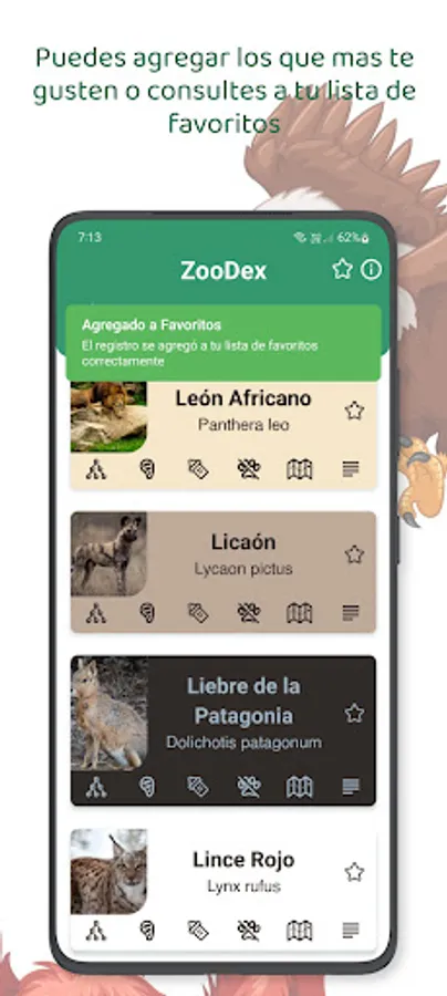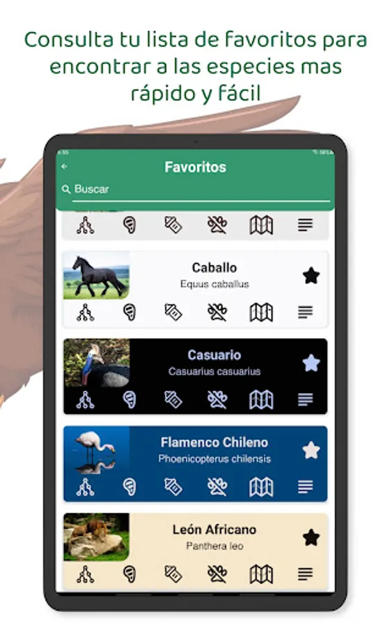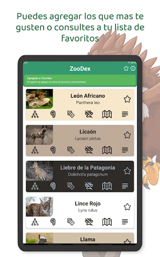 In addition to being able to add the animals that you like or consult to your favorites list.