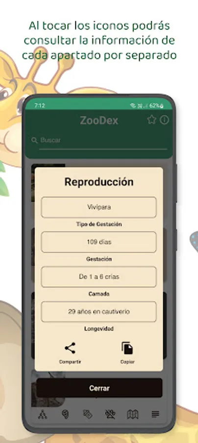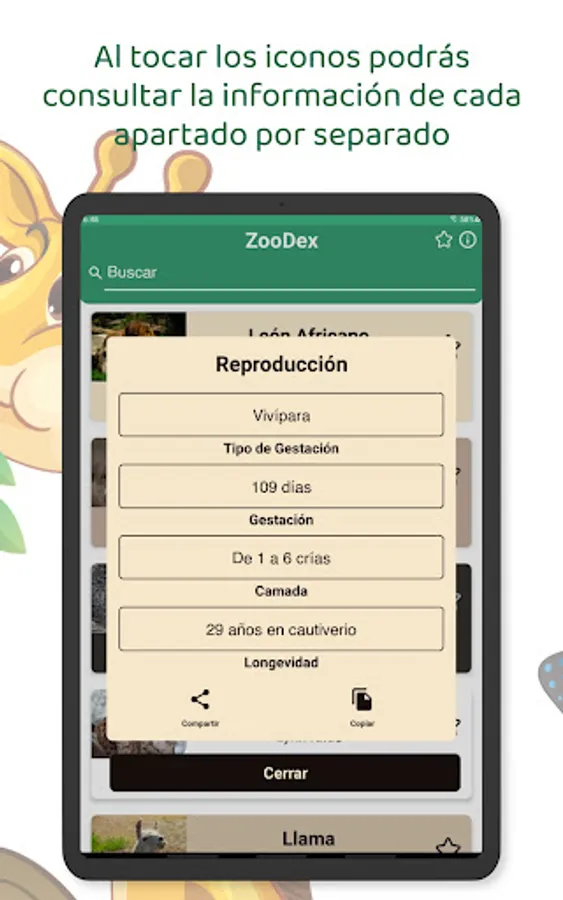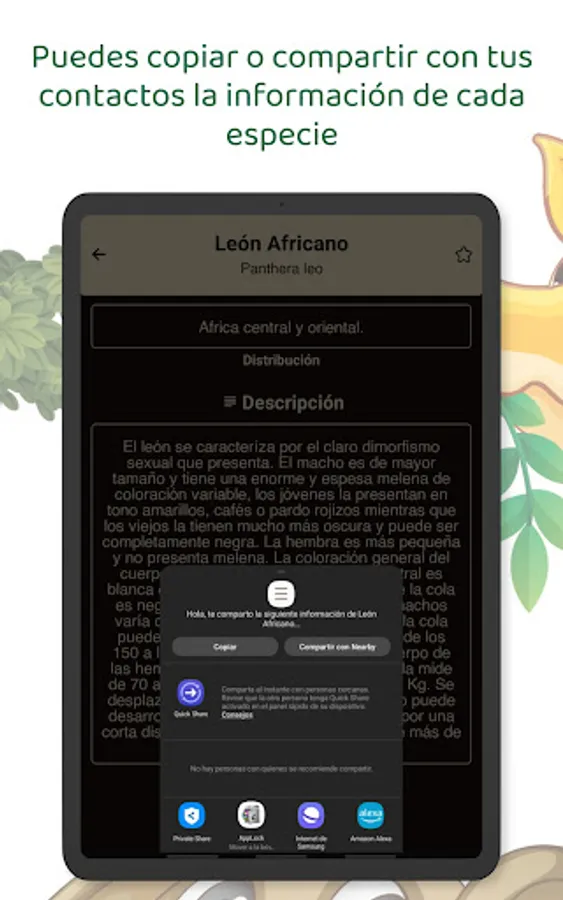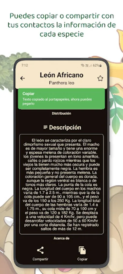 You can also copy or share with your contacts the information of each section separately or the complete information of each species.