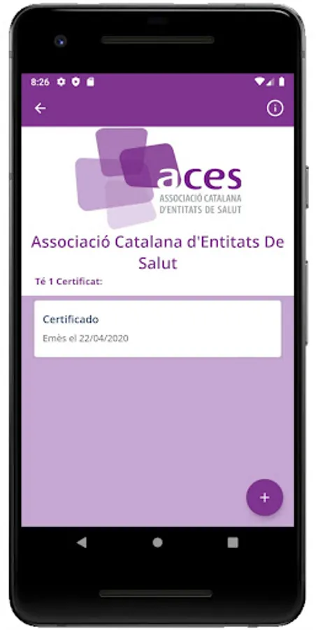 The "ACES Certificates" App, promoted by the "Catalan Association of Health Entities" - ACES, allows you to keep a copy of the Certificates of the association and its members, and to be able to prove that they are authentic and have not been manipulated. However, it allows you to share them, and anyone can check them with your smartphone. Data is secured via Blockchain.
