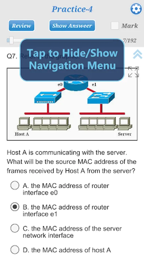 - Easily go back to the questions which you want to review again with "Mark" and "Review" features