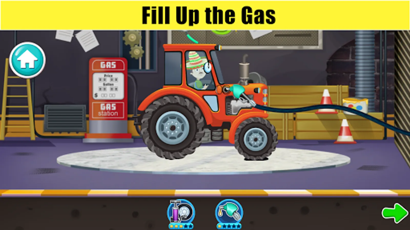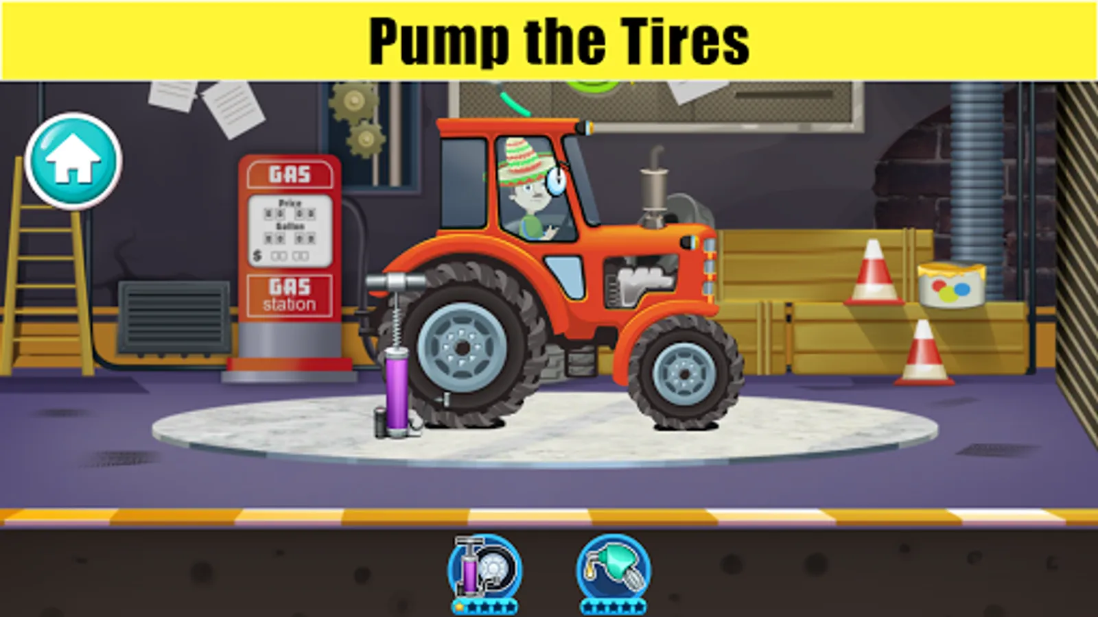 - Different repair tasks: pump the tires, and fill up the tank with gas