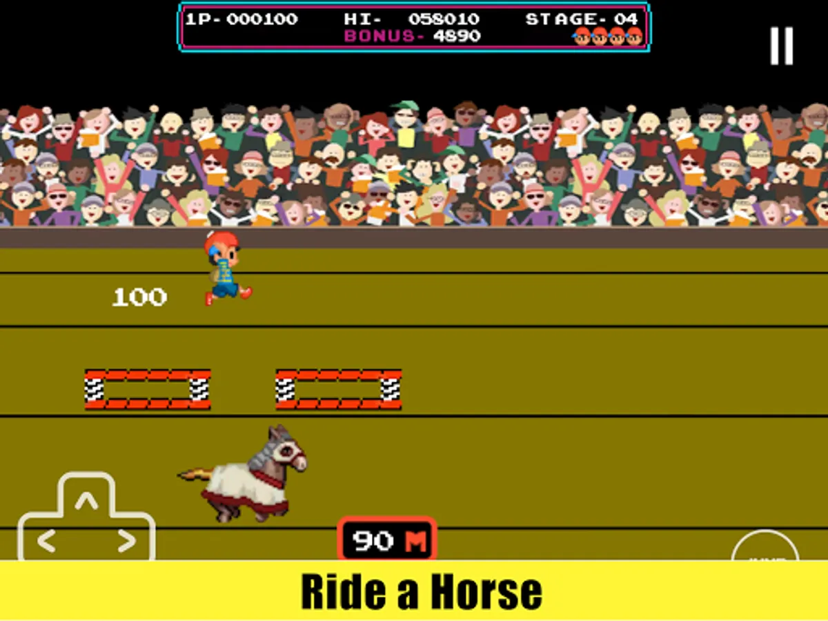 Stage 4: Ride a horse and jump over trampolines and walls