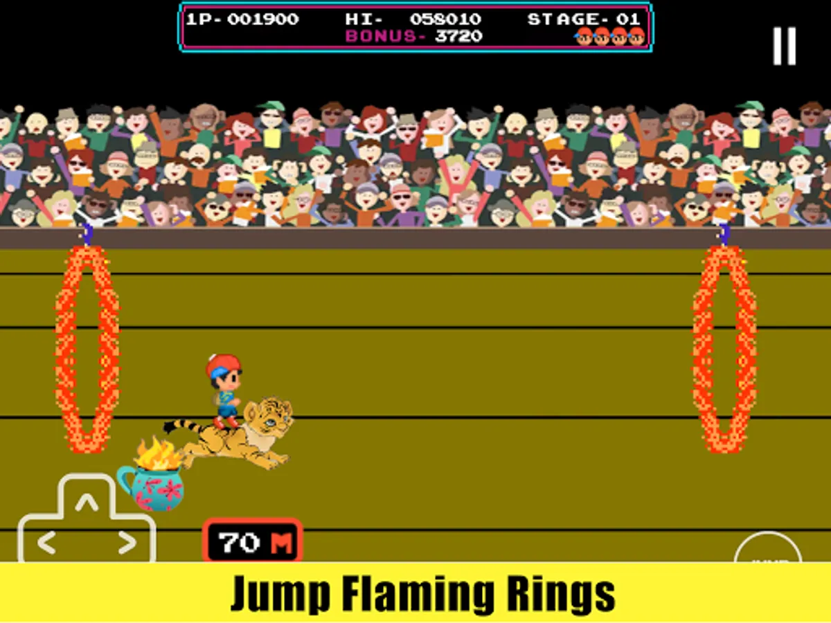 Stage 1: Ride on a lion and jump through flaming rings