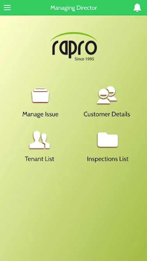 In MD, we can view the status of property issues given by tenant.. then we can manage leave by property or maintenance head.. and attendance log (Employee log in and log out) can be viewed.